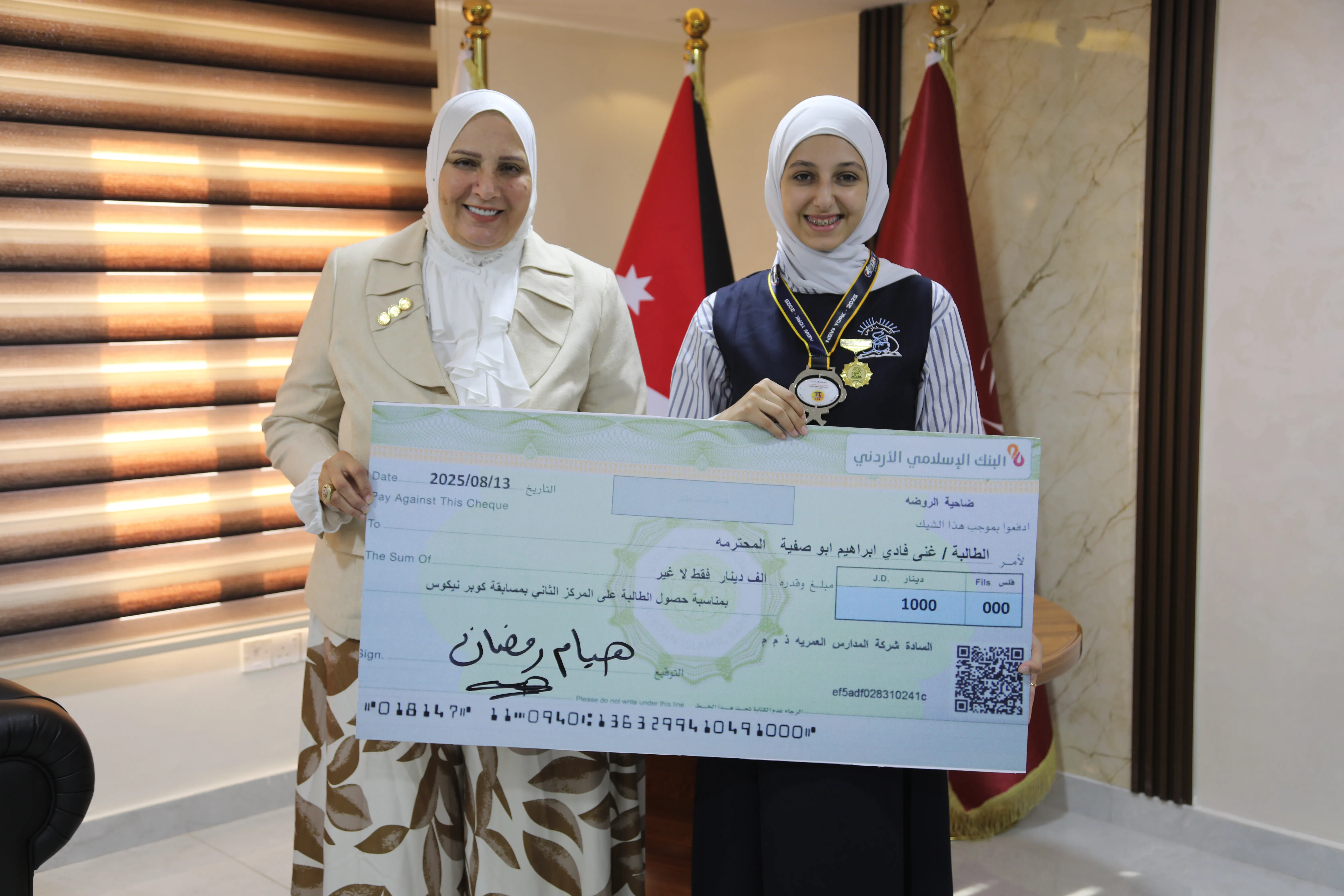 في لوحةٍ مشرّفة من لوحات الإنجاز، استقبلت المدير العام للمدارس العُمرية الطالبة المتألقة غنـى أبو صفية، الحاصلة على المركز الثاني عالميًّا في مسابقة كوبرنيكوس الدولية، وذلك في مكتبها بحضور والدتها الكريمة، ومديرة المدرسة.